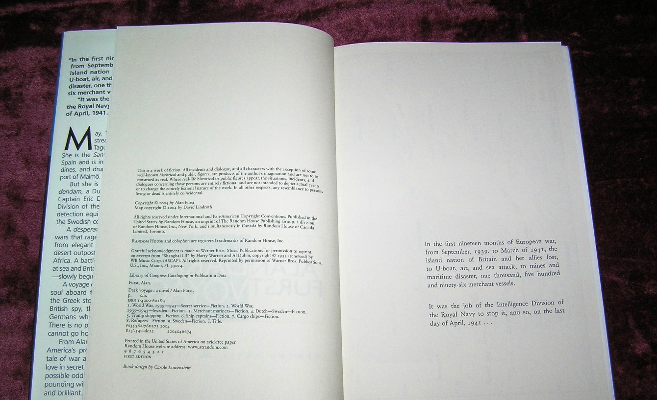 ALAN FURST Dark Voyage 1st Ed.