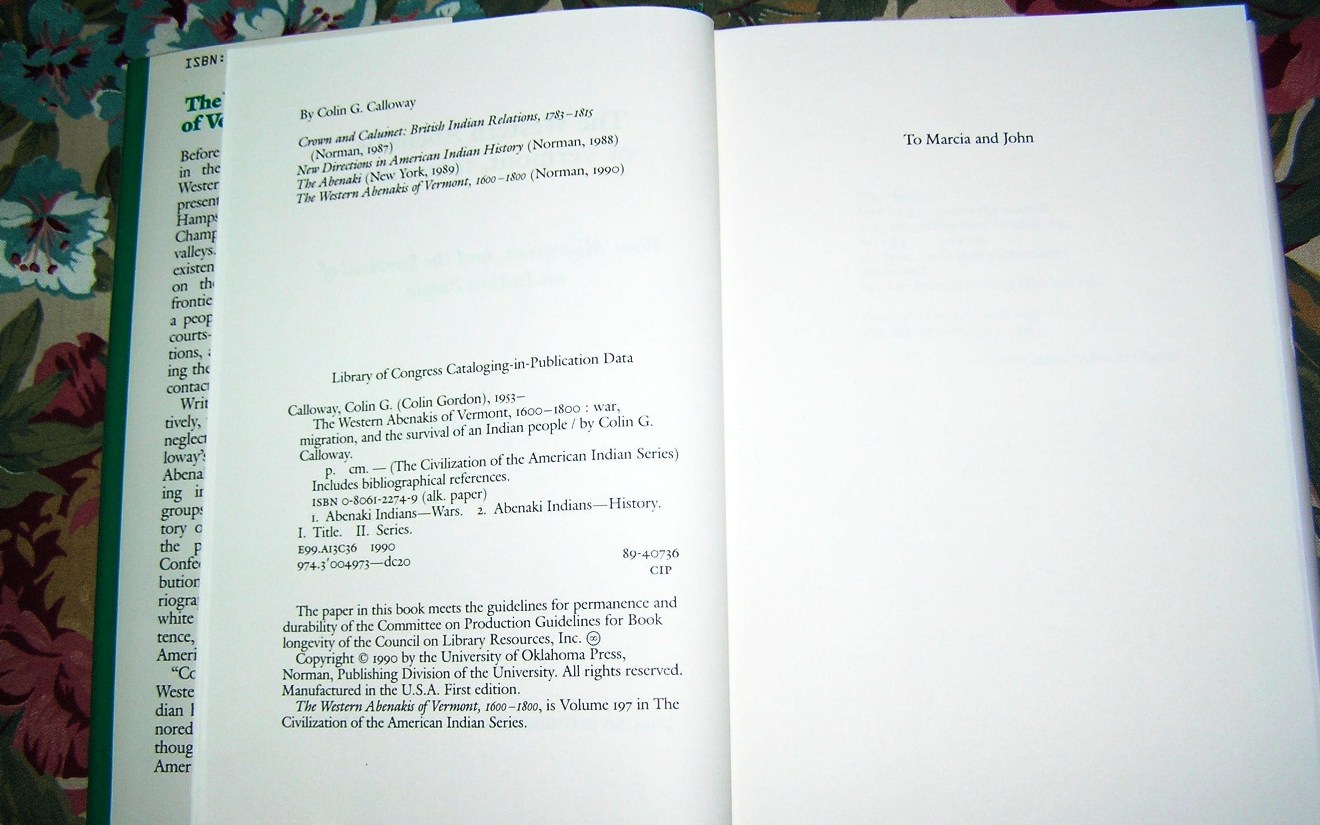 COLIN G. CALLOWAY Western Abenakis of Vermont 1st Ed.