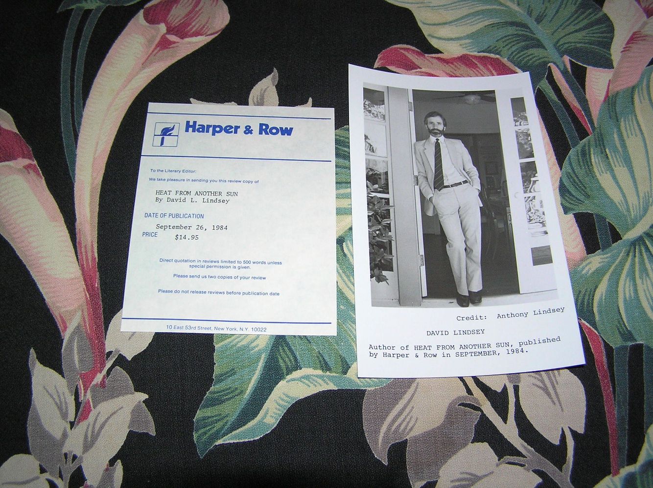 ISBN: 0060153466/ Markings: Review Copy, First Edition, plus Number Line 10 to 1. Black and White publicity photo of Author. Review Copy slip from Publisher.