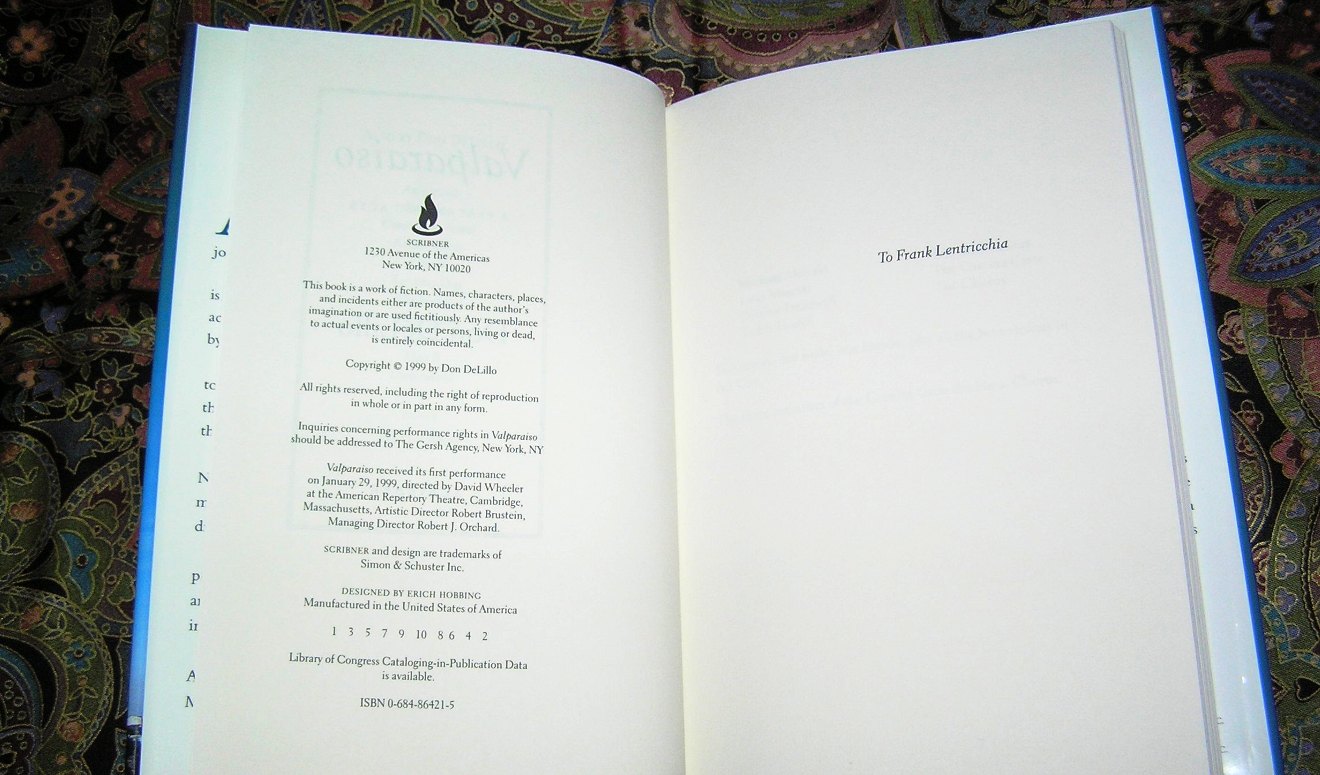 DON DELILLO Valparaiso 1st Ed.