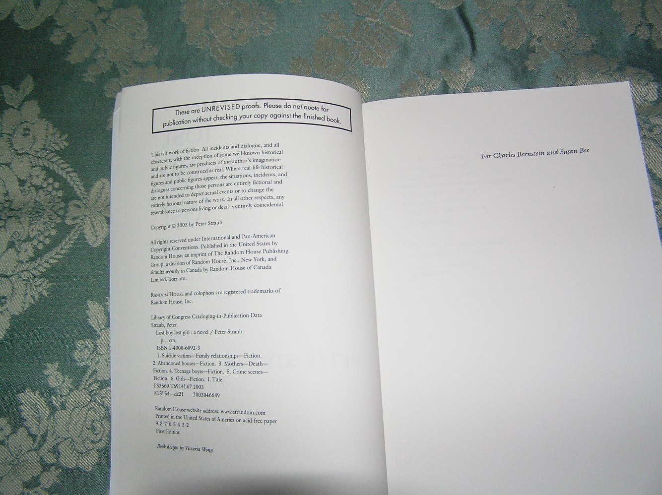 ISBN: 1400060923/ Markings: Advance Reader’s Edition, First Printing 100,000, plus Number Line 98765432.